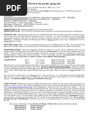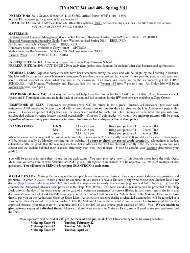 Finc341TAmaystamuedu Read this syllabus FIRST before emailing questions do NOT abuse this service. FINC 409 Test 3 Q20pdf. Start studying Finance 409 Exam 1.